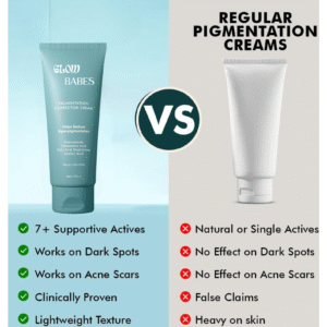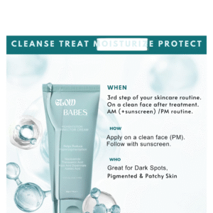 Glow Babes Pigmentation Corrector Cream – A powerful blend of Niacinamide, Tranexamic Acid, Kojic Acid Dipalmitate, and Azelaic Acid that helps fade dark spots, even skin tone, and restore radiant, healthy-looking skin. Suitable for all skin types.